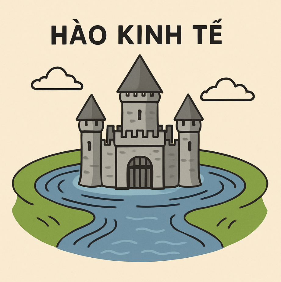 Nó mô tả khoảng cách bảo vệ giữa doanh nghiệp và đối thủ cạnh tranh — giống như một cái "hào nước" bao quanh một tòa lâu đài.